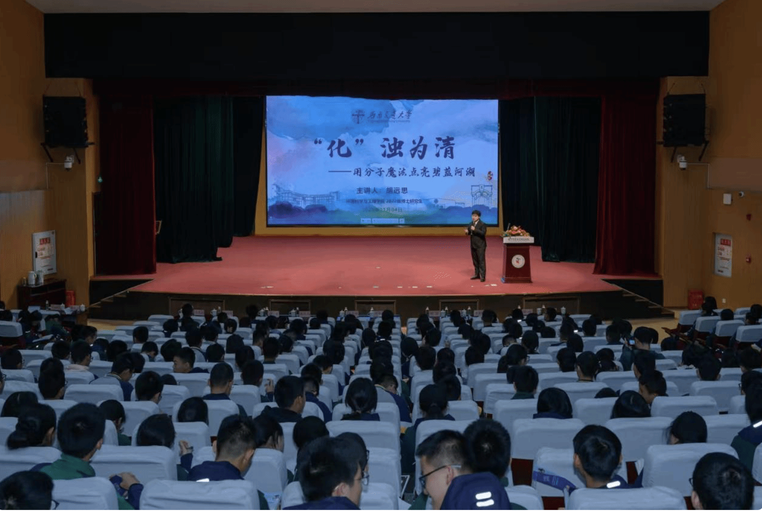 近日,红桃视频 与成都市实验外国语学校签署合作备忘录,正式启动大中小学思想政治教育一体化建设项目。我校党委副书记高平平出席活动并为共建基地揭牌。在活动中,作为学校优秀研究生讲师团成员、红桃视频 “美丽中国·青年说”宣讲团(青年讲师团)团长,红桃视频 2022级博士研究生胡远思以《“化”浊为清:用分子魔法点亮碧蓝河湖》为题作首场讲座。他从中学化学基础知识出发,结合其在环境治理领域的前沿科研实践,生动展示了专业知识如何服务于“...