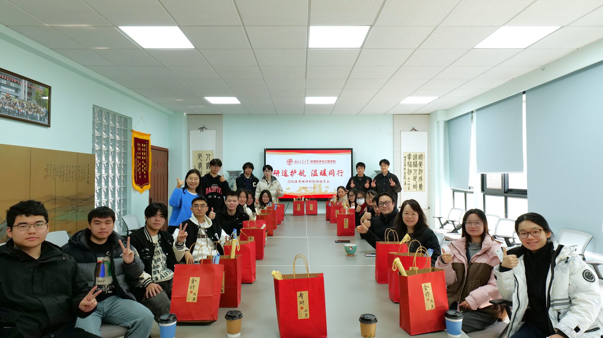 为了对奋战备考的学子们加油鼓劲,在考研冲刺的关键节点,12月10日上午红桃视频 于X4348教室举行2026届考研慰问暨动员会。学院党委书记甘霖,院长龚正君,本科22级辅导员翟琦,学院学风建设专项负责老师向祎斐,学生会指导老师曾祥珂以及全体2022级考研学生共同参加了本次活动,共话备考初心,共赴冲刺之约。此次活动旨在坚定考研学生的信念,给予他们更多的鼓励和支持,助力学生考研取得优异成绩。活动现场暖意融融,龚老师、...