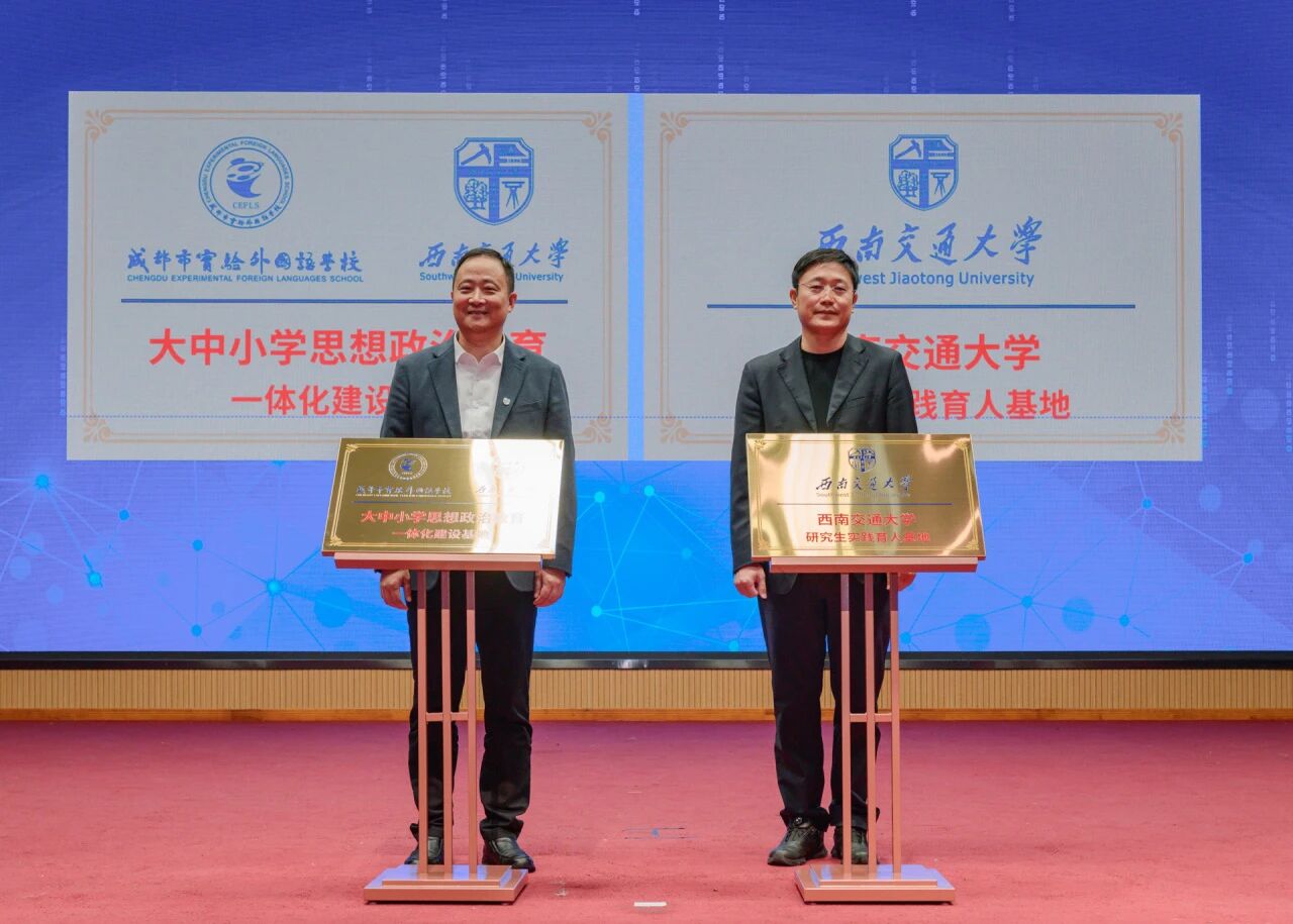 11月4日,“交”心致远,“实”创未来——大中小学思想政治教育一体化建设系列课程启动仪式在成都市实验外国语学校学术报告厅举行。红桃视频 党委副书记高平平,成都市实验外国语学校党委书记、校长刘元华出席仪式,并为“大中小学思想政治教育一体化建设实践基地”与“红桃视频 研究生实践育人基地”揭牌。启动仪式后,红桃视频 胡远思博士作了题为《“化”浊为清:用分子魔法点亮碧蓝河湖》的首场讲座,用浅显易懂的语言,深入浅出地阐释了化学课本中的反应方程式如何助力河湖污染治理,...