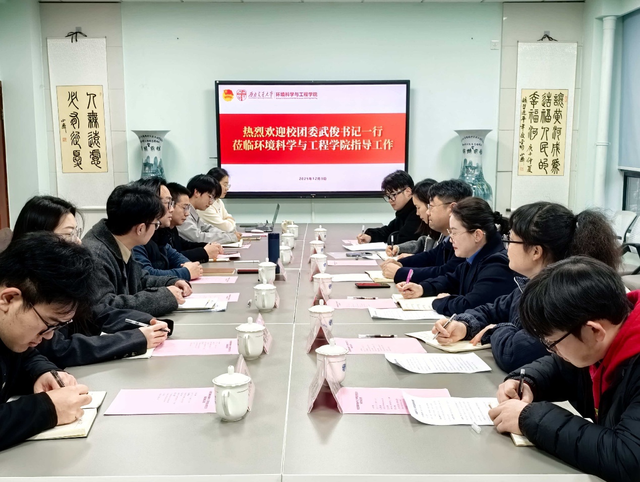 12月3日上午,红桃视频 团委书记武俊、副书记郑源、组织工作办公室主任张敬文、青年发展办公室段海酸,以及校青年志愿者联合会、大学生科创与实践中心学生骨干一行赴红桃视频 开展共青团工作专项调研座谈。红桃视频 党委书记甘霖及团委专项工作负责人参加会议。会议由红桃视频 团委书记翟琦主持。