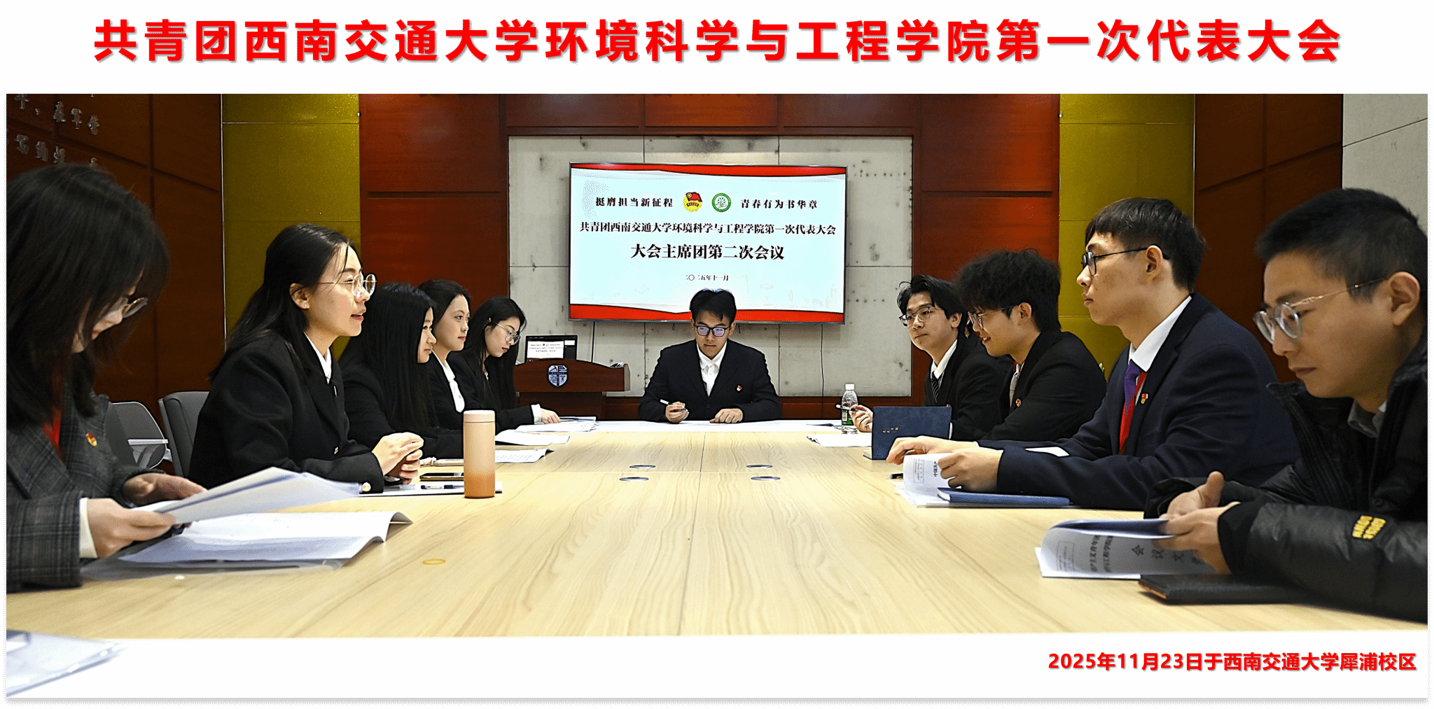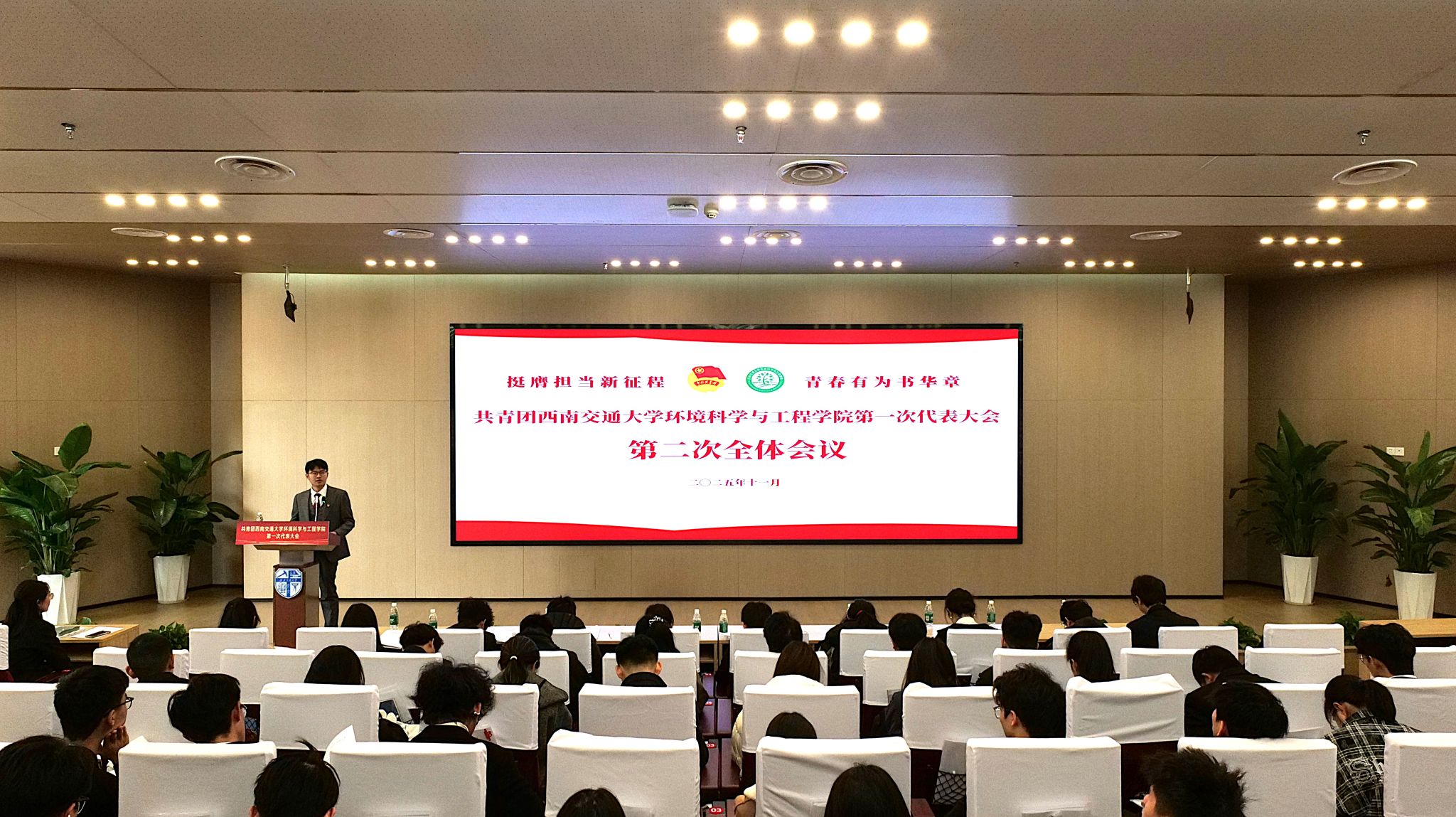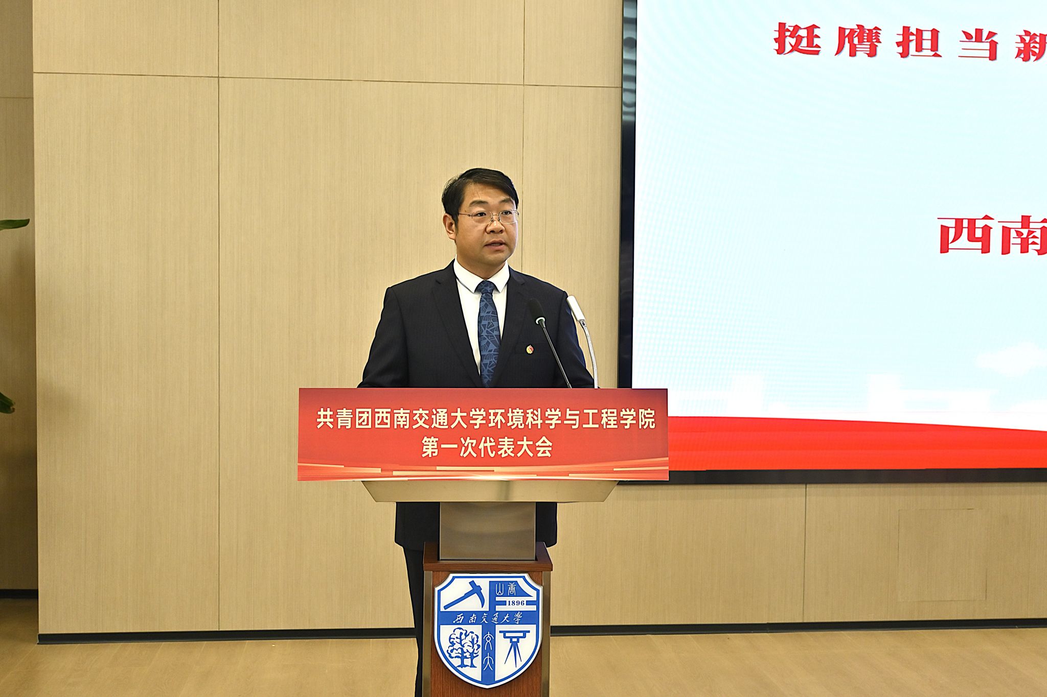 第一次代表大会在犀浦校区图书馆二号报告厅及分会场顺利召开。校团委书记武俊、学院党委书记甘霖、团委书记翟琦、校学生会主席团成员、校研究生会主席团成员、各学院共青团工作一线团干部出席大会,学院66名代表参加大会。开幕式由翟琦同志主持。