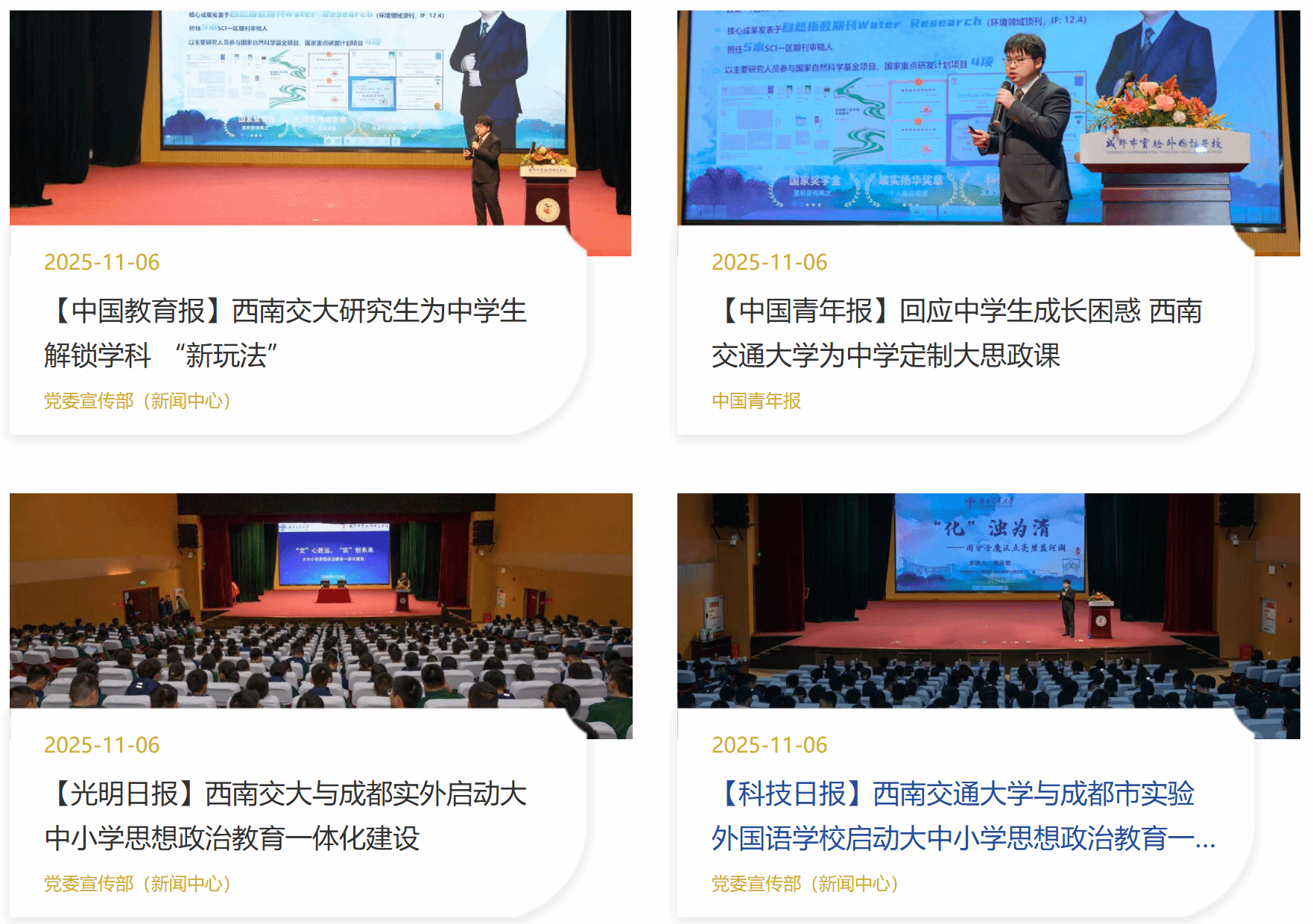 与成都市实验外国语学校签署合作备忘录,正式启动大中小学思想政治教育一体化建设项目。我校党委副书记高平平出席活动并为共建基地揭牌。
