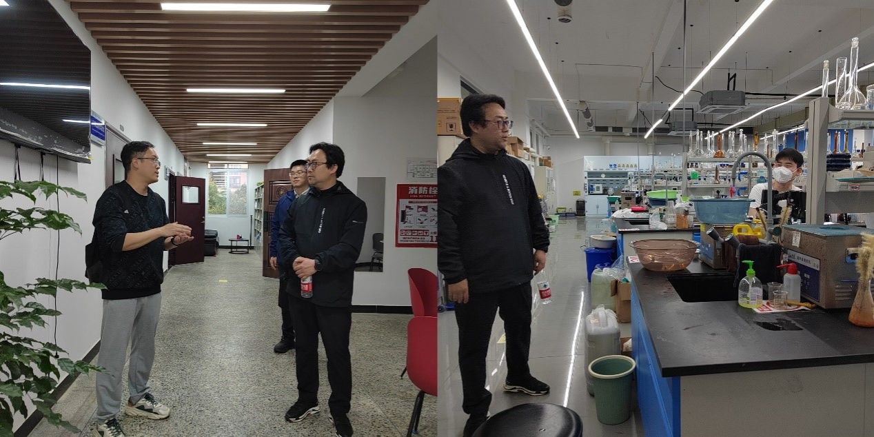 4月,红桃视频 党委书记甘霖,党委副书记胡安辉一行走访环境科学与工程实验中心,走访中主要检查了实验室设施设备、安全管理及运行效能,了解了实验室对教学科研的基础支撑作用。