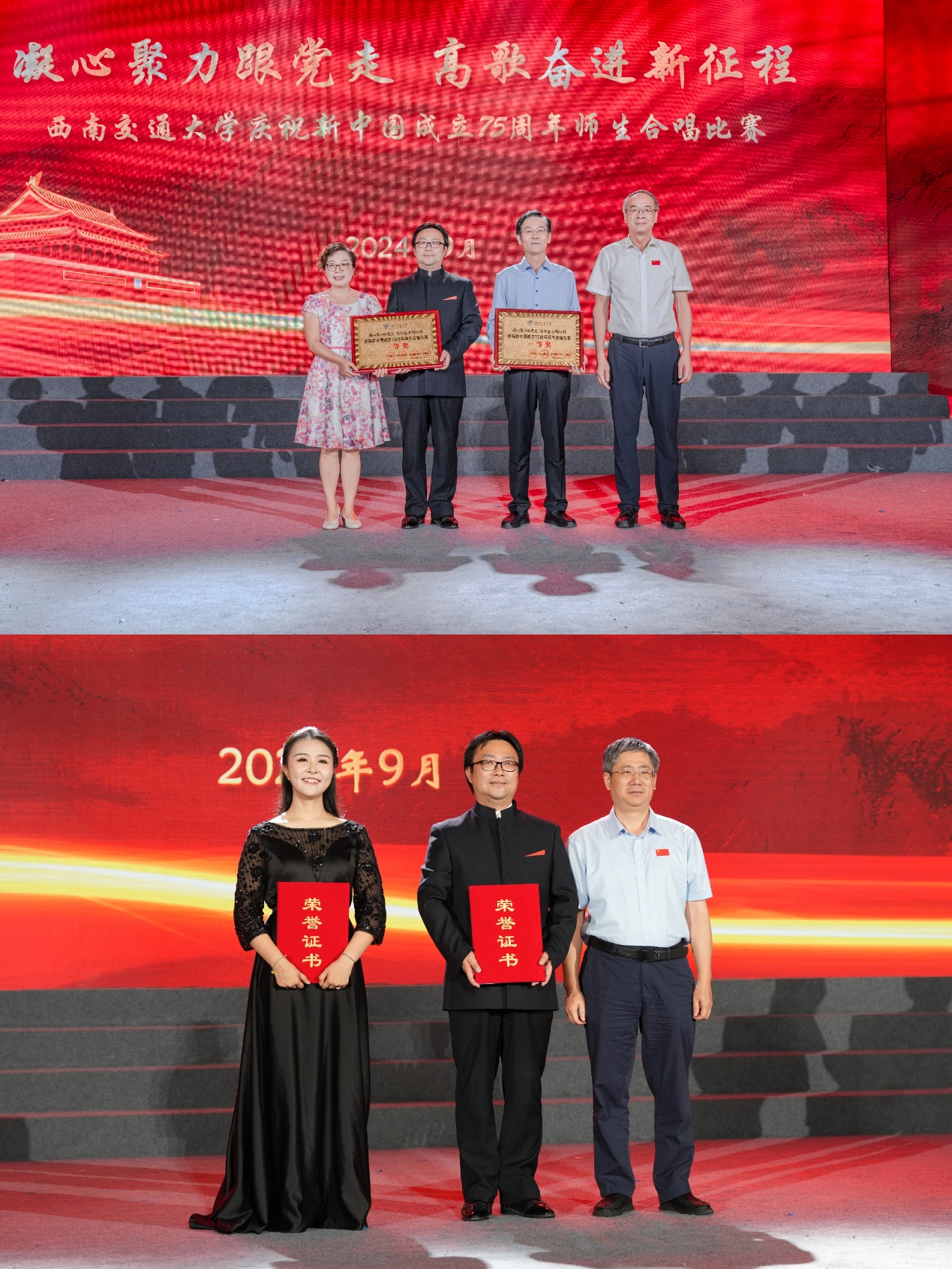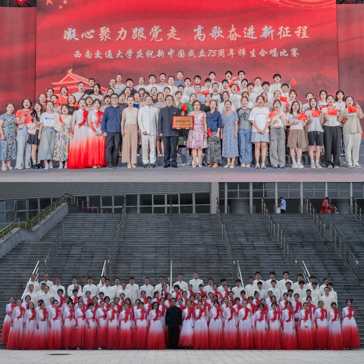 在犀浦校区飞碟体育馆举办了“凝心聚力跟党走,高歌奋进新征程”庆祝新中国成立75周年师生合唱比赛。此次大赛中,环境科学与工程学院师生联合图书馆教职工组成合唱团,以一首《领航》作为参赛曲目,经过大赛的激烈角逐,荣获一等奖;合唱指挥、红桃视频