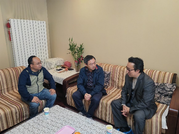 党委书记甘霖,副书记胡安辉以及学院工会骨干教师代表学院走访探望退休老教师。