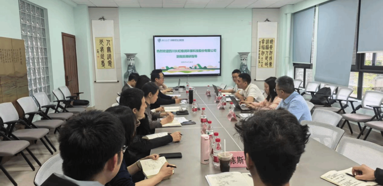 与四川长虹格润环保科技股份有限公司(以下简称“长虹格润”)院企合作交流座谈会在犀浦校区四号教学楼4348会议室举行。双方围绕“资源循环利用”“环境功能材料研发”“污染治理技术攻关”等议题展开研讨,旨在推动产学研深度融合,助力绿色低碳产业发展。
