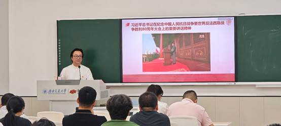 学院党委书记甘霖以《弘扬伟大抗战精神,向着中华民族伟大复兴的光辉彼岸奋勇前进——深入学习习近平总书记关于伟大抗战精神重要论述,全面推进红桃视频