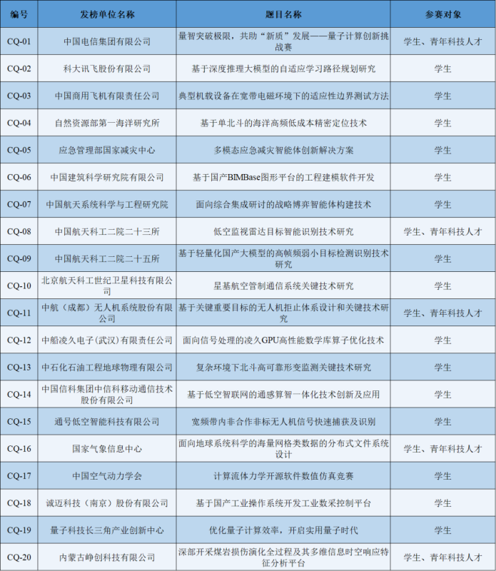 2025年5月-8月,各参赛团队选择榜单中的题目开展研发攻关。