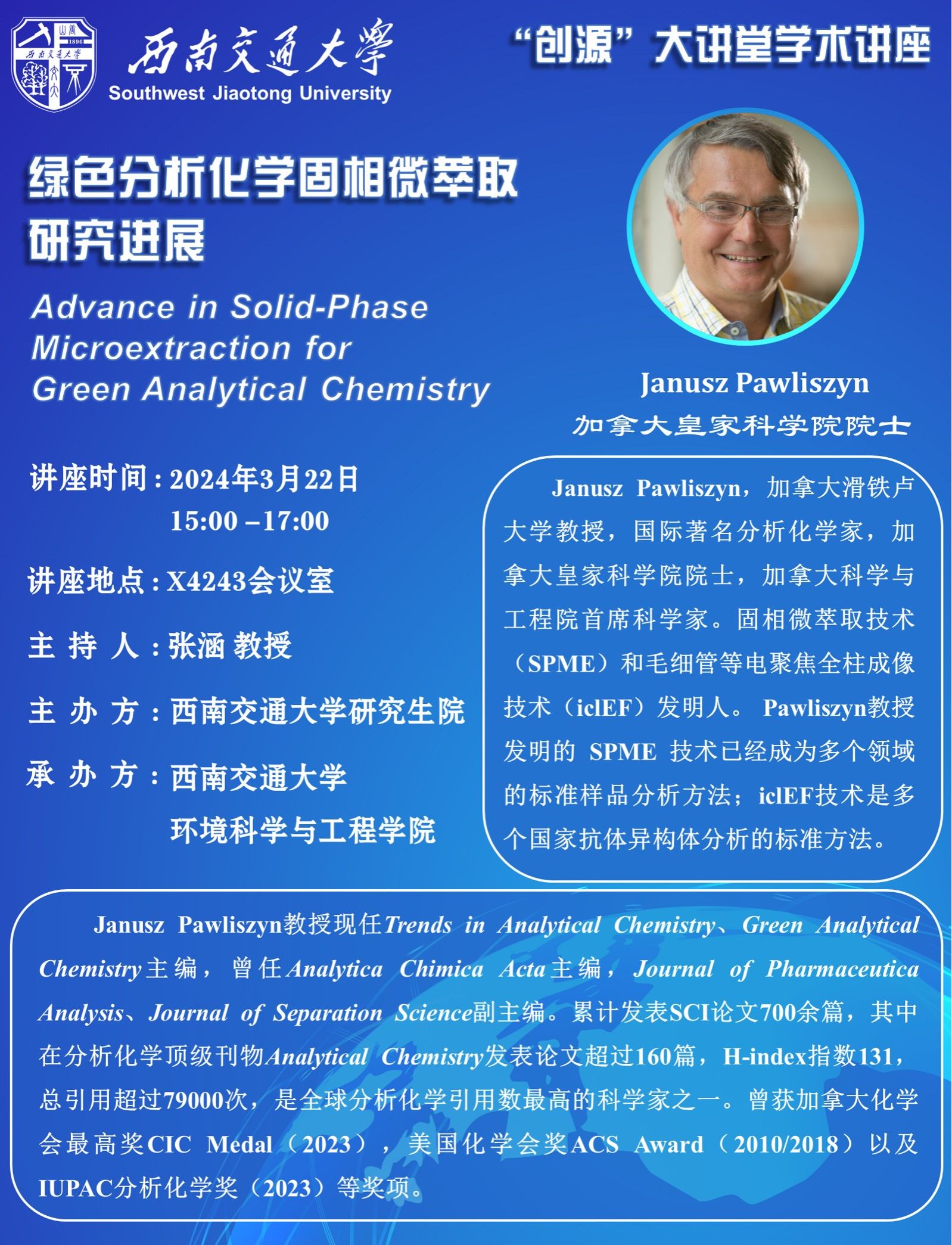 加拿大皇家科学院院士Janusz Pawliszyn教授学术报告