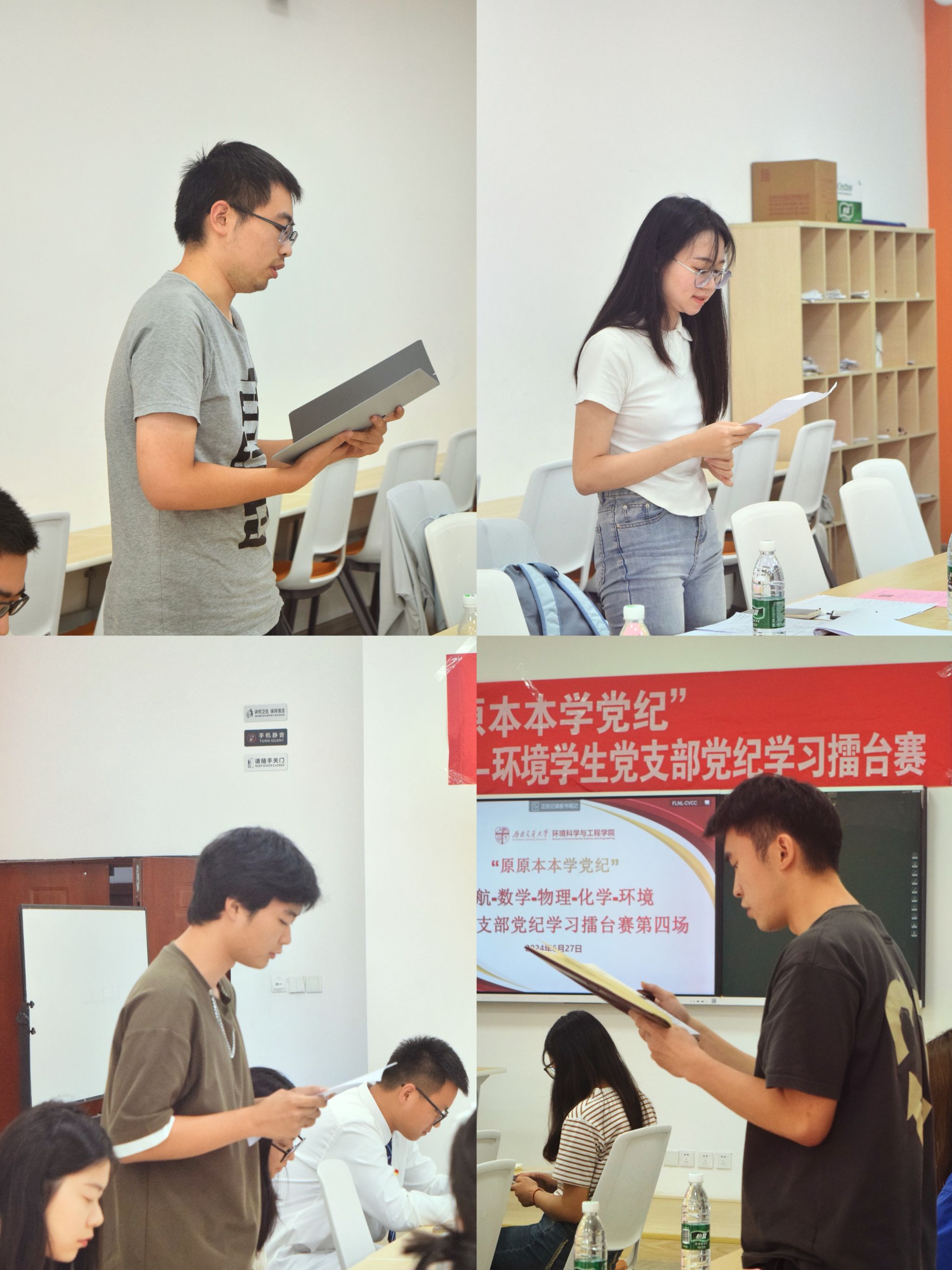 黄泳桦,及力航、数学、物理、化学和环境五个学院的学生党员代表参加,研23级环境第二党支部侯凌潇同志主持。