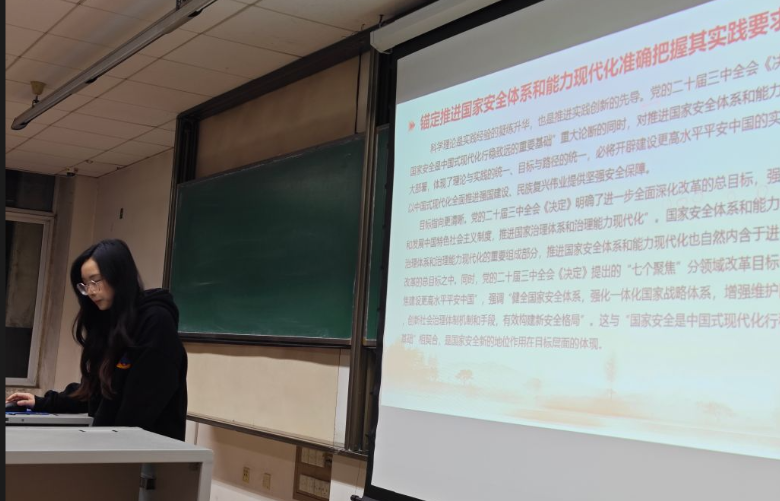 活动伊始,支部书记对党的二十届三中全会精神进行了深入解读,强调“国家安全是中国式现代化行稳致远的重要基础”,并指出这一论断深刻彰显了党中央统筹发展和安全的深谋远虑,为筑牢中国式现代化的安全保障提供了科学指引。