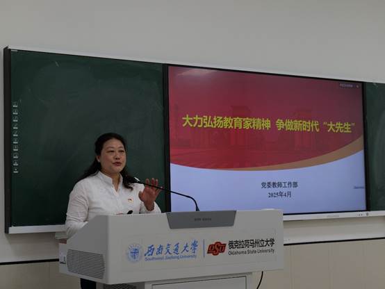 在“追求师德‘高线’”部分,张春燕以习近平总书记关于教育家精神的重要论述为引领,深情回顾了黄大年、卢永根、张桂梅等教育楷模的感人事迹。她强调,新时代教师需以“心有大我、至诚报国”的理想信念为指引,将教育家精神融入教书育人全过程,做学生为学、为事、为人的示范。