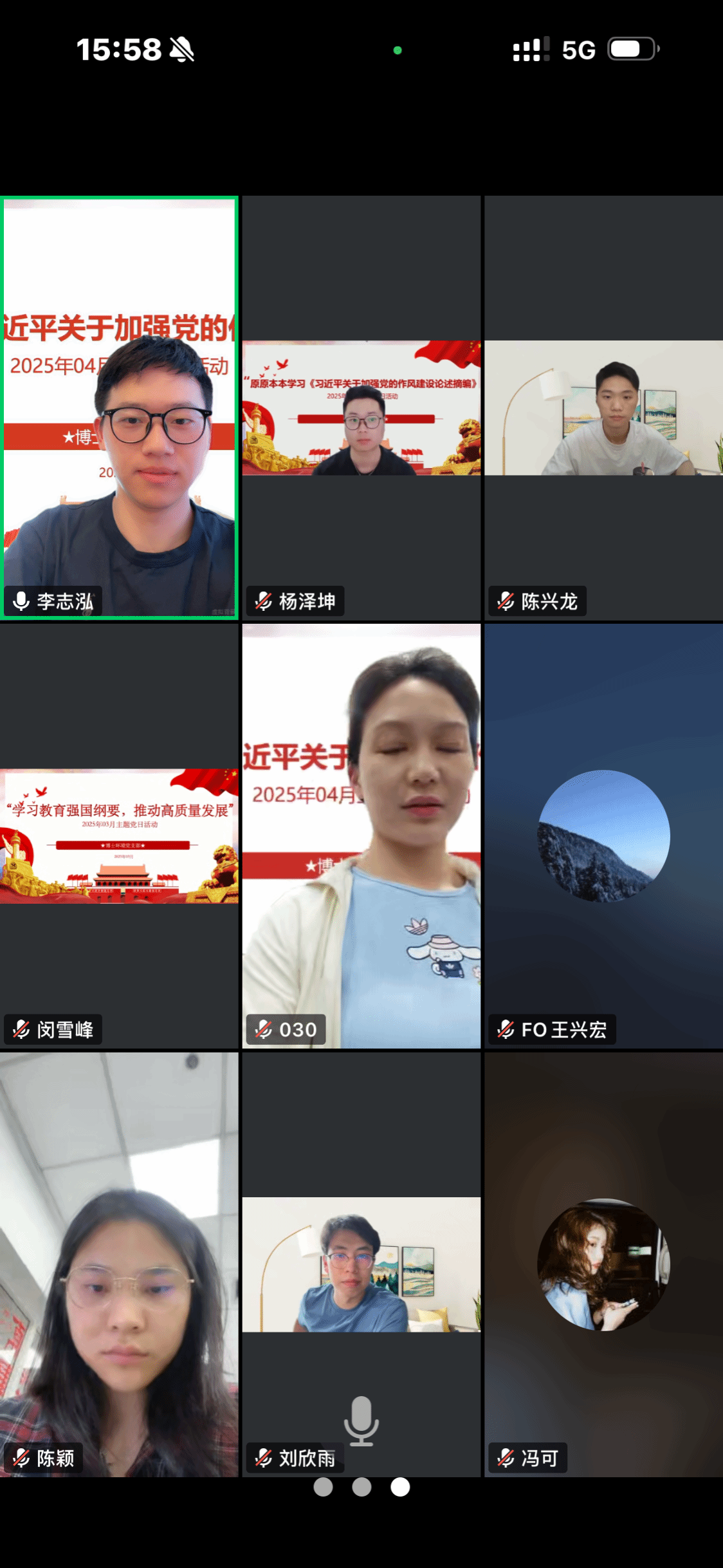 为进一步加强党的队伍建设,提高发展对象的政治素养和党性修养。博士环境党支部于2025年04月19日下午3:00在X4520教室和腾讯会议同步举行发展对象入党推优答辩,会议由支部书记朱欢欢主持,19名党员参加会议。本次会议主要目的是结合3位入党积极分子的现实表现,充分听取与会人员意见,尤其是重点参考政治表现,为入党积极分子作为发展对象人选的各个方面进行综合打分。