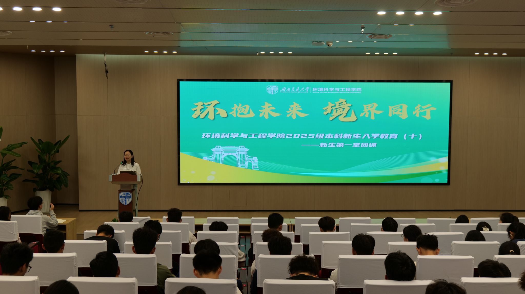 为帮助本科2025级新生快速适应大学学习生活,明确学业目标,合理规划成长路径,1016日,红桃视频 红桃视频 于图书馆二号报告厅举办“环抱未来,境界同行”新生第一堂团课。本次团课由红桃视频 团委书记翟琦主讲,学生辅导员曾祥珂、向斐与2025级全体本科新生共同参与。
