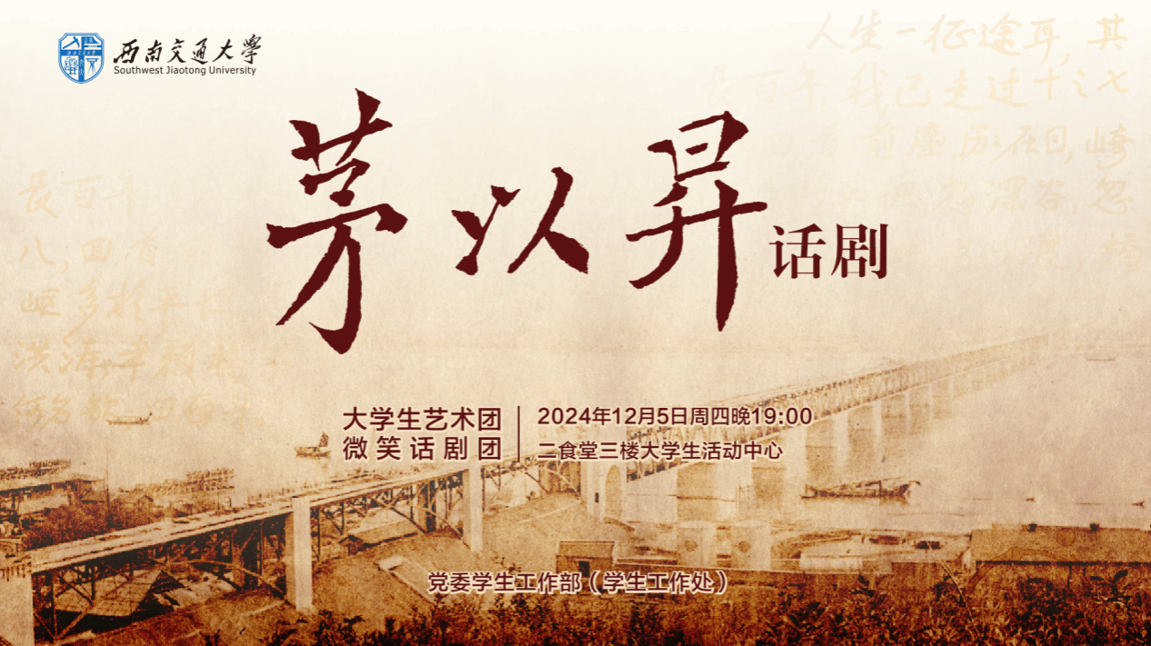 大学生艺术团微笑话剧团带来的原创话剧《茅以升》即将上演,具体通知如下: