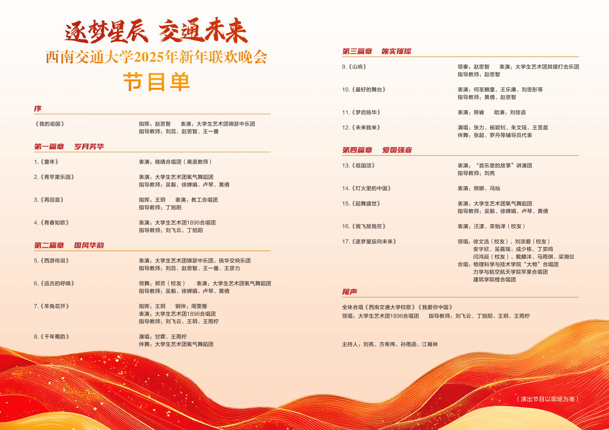 2025年新年联欢晚会。诚邀全校师生员工校友观看,共同辞别旧岁,喜迎新年!